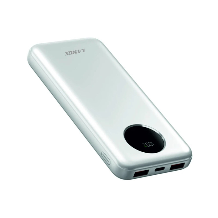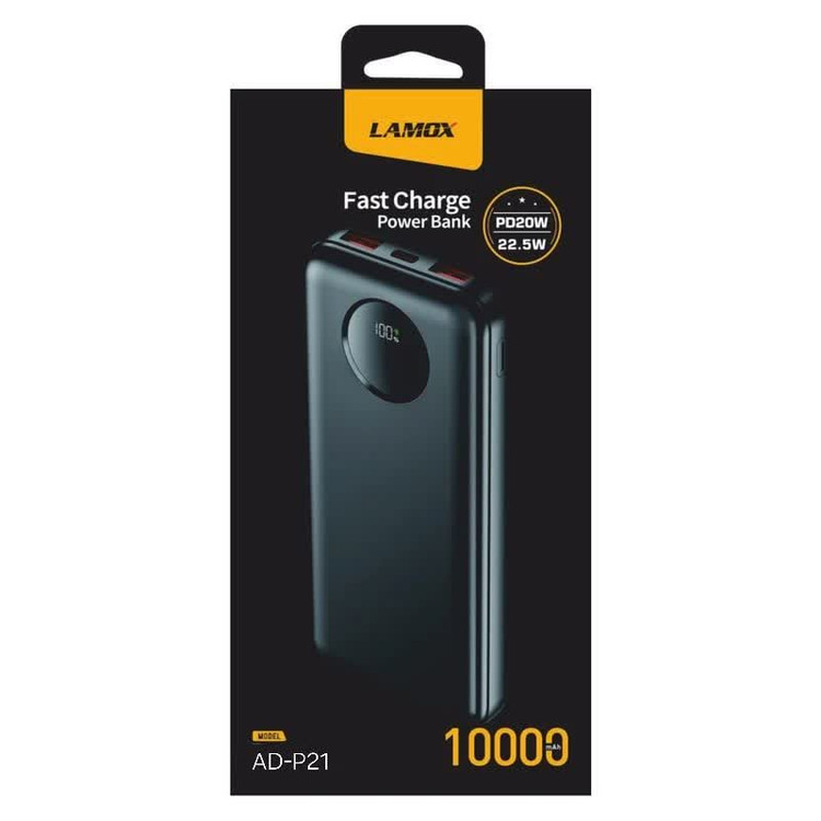 پاوربانک ۱۰هزار میلی آمپر لاموکس . با تکنولوژی fast charging دارای دو خروجی پورت USB و یک پورت خروجی و ورودی TYPE C . دارای نمایشگر میزان شارژ و توان واقعی ۱۰/۰۰۰ میلی امپر . با طراحی ساده و زیبا و ابعاد و وزن مناسب برای امکان حمل و نگهداری راحت . در ساخت این محصول از تراشه های شناخته شده استفاده شده که امکان شارژ کارامد و ایمن را فراهم میکند. لاموکس با طراحی ظاهری نوآورانه و بهینه سازی شده و با مواد با کیفیت بالا فرایند تولید با استاندارد بالا و منترل کیفیت دقیق محصولات با کیفیت با درصد رضایت بالا در اختیار مصرف کنندگان قرار میدهد.